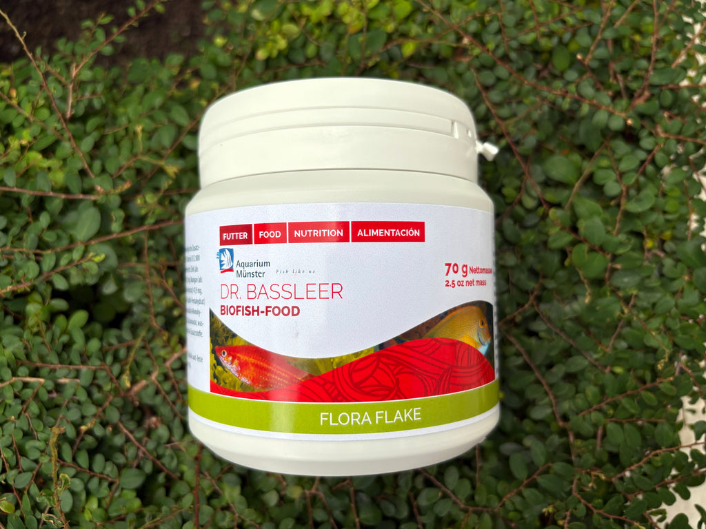 Dr. Bassleer Biofish Food flora flake for herbivorous fish contain everything necessary to provide natural nutrition. Based on the vitamin concept, the nutrients are only granulated after the flakes have been prepared. This is the reason why the premium flakes are particularly rich in nutrients and vitamins. Due to this very special production process the flakes have a special appearance with a rough surface. The biologically valuable food comes very close to natural nutrition. That is the reason why Dr. Bassleer Biofish Food is eaten so avidly by nearly all ornamental fishes.